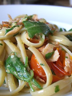 | Titel: | Nudeln mit Räucherlachs und Zitronenpesto |